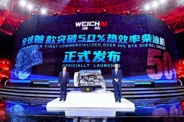 中国内燃机国家检测机构中国汽车技术研究中心有限公司、国际权威内燃机检测机构德国TÜV南德意志集团将热效率达到50.26%的认证证书颁发给潍柴。山东省副省长、中国工程院院士凌文与谭旭光董事长共同为全球首款50%热效率的柴油机揭幕。