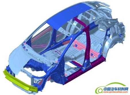 图3为本田CIVIC白车身用材示意图(零件的用材的类型用RGB颜色代码加以区分):