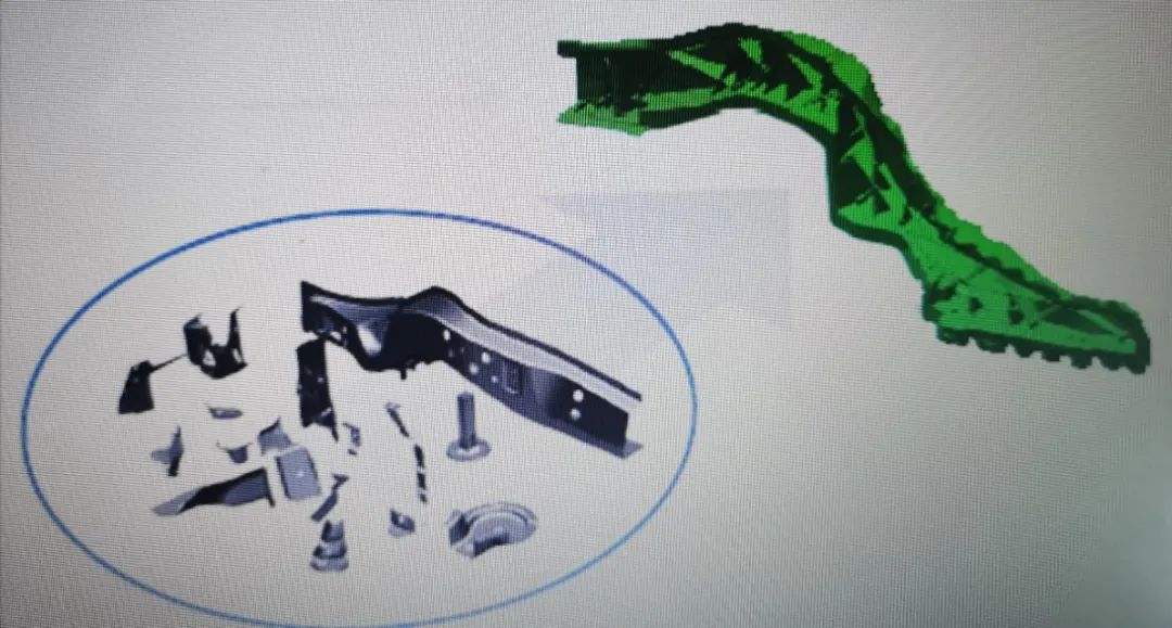 真空高压铸造铝合金后纵梁有一个较大的设计空间和设计自由度,可采用有效的结构设计来改善其碰撞性能,提高轻量化效果; 另外,以高压铸造一体成形技术,代替传统多钢件焊接结构,集成多个安装点于一体,实现模块化,有利于 车身刚度的提升。