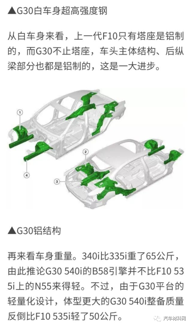 宝马五系七系的前轮罩和后纵梁是铝合金结构件,特别是七系的后纵梁一直是行业内设计的标杆。