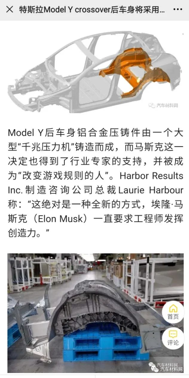 4)界面新闻:马斯克称,在德国生产的Model Y将采用“突破性的车身工艺”