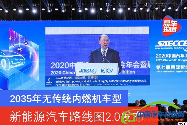 易车讯 10月27日,在2020中国汽车工程学会年会暨展览会上,中国汽车工程院院士、中国汽车工程学会理事长李骏代表汽车学会发布了《节能与新能源汽车技术路线图2.0》。