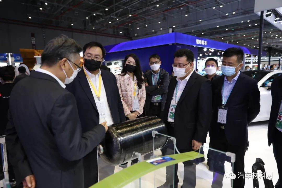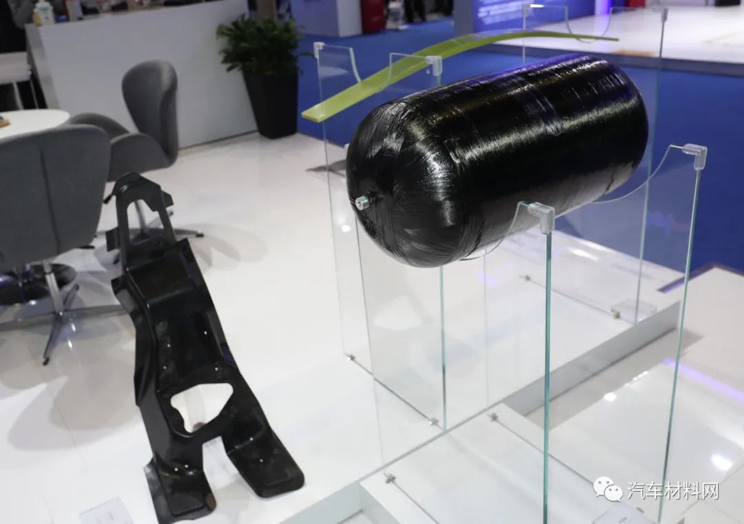 HRC展示的玻纤SMC+碳纤维增强体电池包上盖预埋金属件和SMC基体一体成型;异型空气过滤盒结合了3种工艺制造;玻纤板簧提升NVH性能,重仅2.2KG,并且通过设计实现功能集成;采用回收碳纤维+PA6结合碳纤维预浸带4点局部增强的注塑C柱加强件,碳纤维4型储氢罐采用湿法缠绕工艺,内胆采用PA,可储存约0.4KG氢气,从材料工程设计到产品结构设计,诠释着HRC对复合材料前沿应用技术的探索。