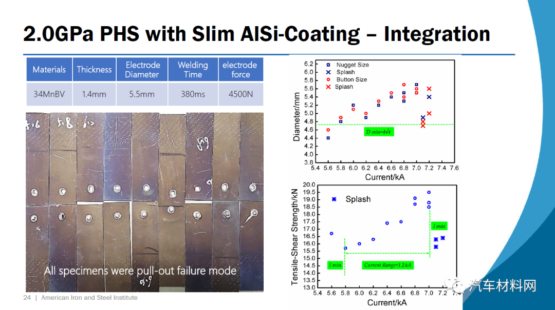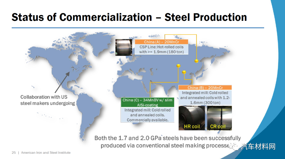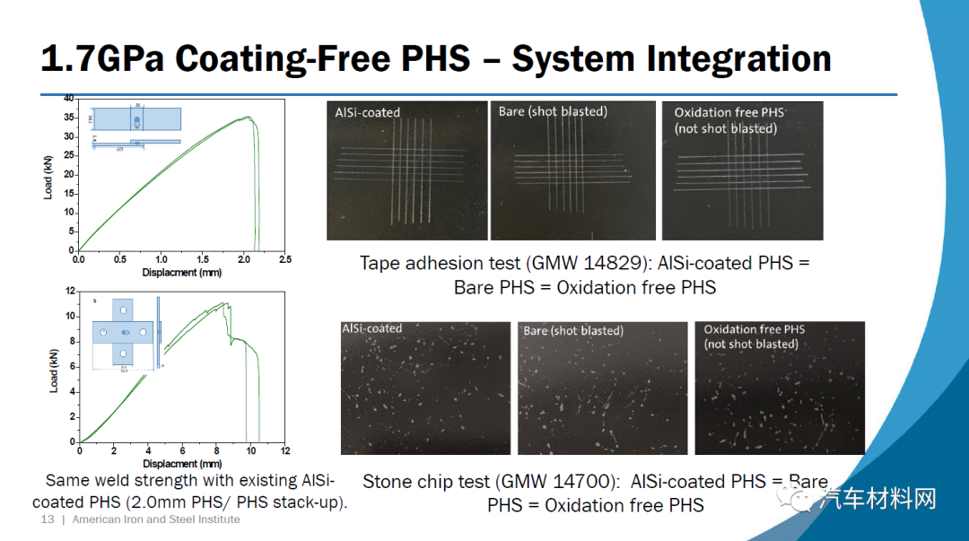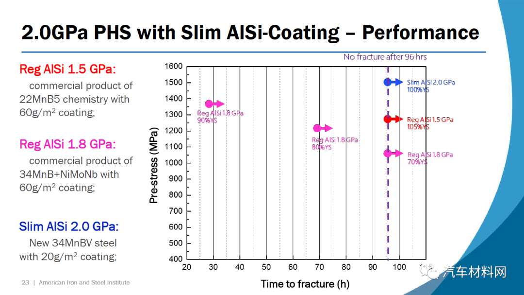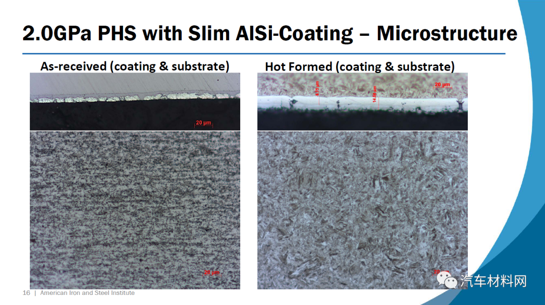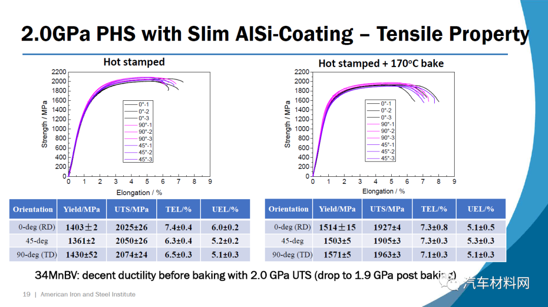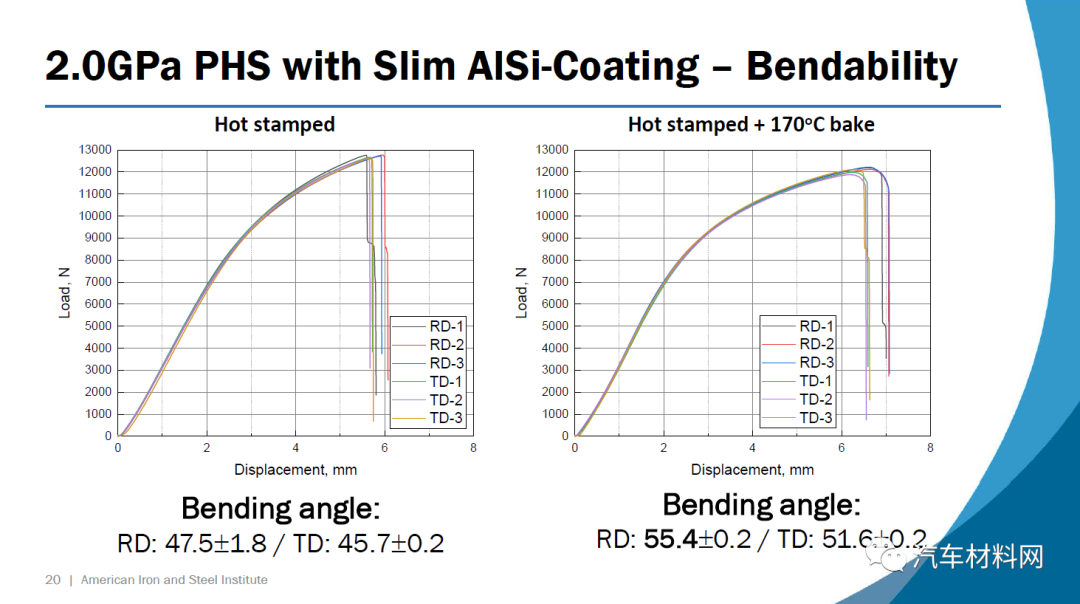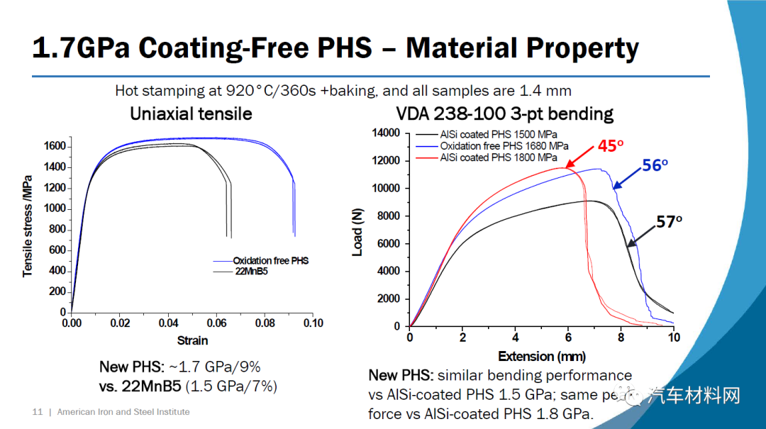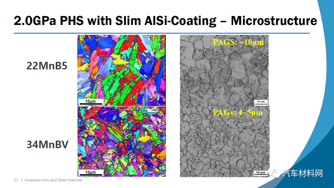 第一种钢34MnBV涂有一层薄薄的铝硅涂层,它包含0.35%的碳(重量)和钒作为微合金元素。根据VDA 238-100测试标准,在1.4 mm的压力下约55度的弯曲角度可实现接近2.0 GPa的极限拉伸强度。