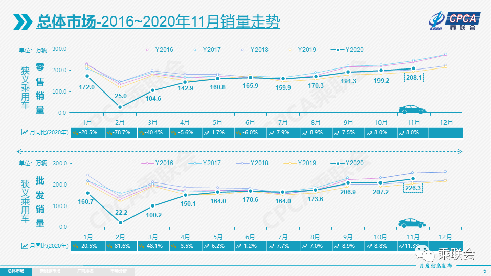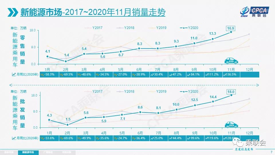 今年全国乘用车市场7-11月增速保持强势态势。这首先是宏观经济和出口市场超预期的回暖。其次是新能源车零售的翻倍回暖态势明显,推动车市走强。
