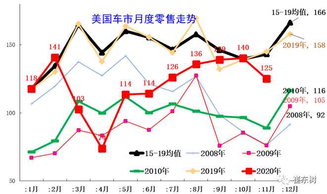 中国车市呈现年初年末相对较强、夏季走势相对偏软的情况。而美国车市呈现年初相对偏弱,年中相对平稳的特征,