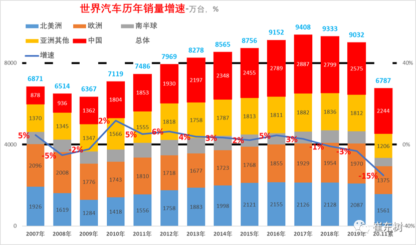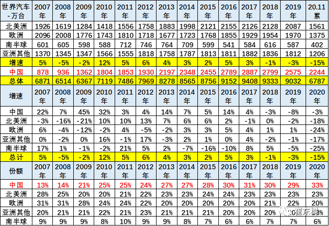 上表中的世界汽车销量主要是70个国家的销量,这70个核心国家在2019年有9000万台左右,这也是基本能跟踪到月度的销量。