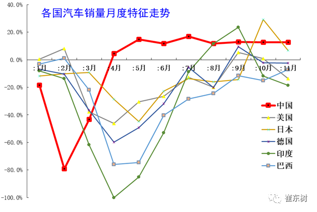 而美国,日本,韩国德国等车市都面临疫情加重,车市出现剧烈下滑后,车市低迷逐步改善的现象,