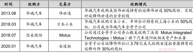 我国主要内外饰零部件公司海外收购情况