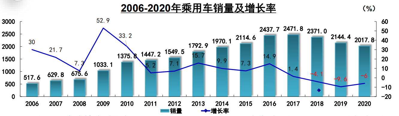 中国乘用车销量及增速