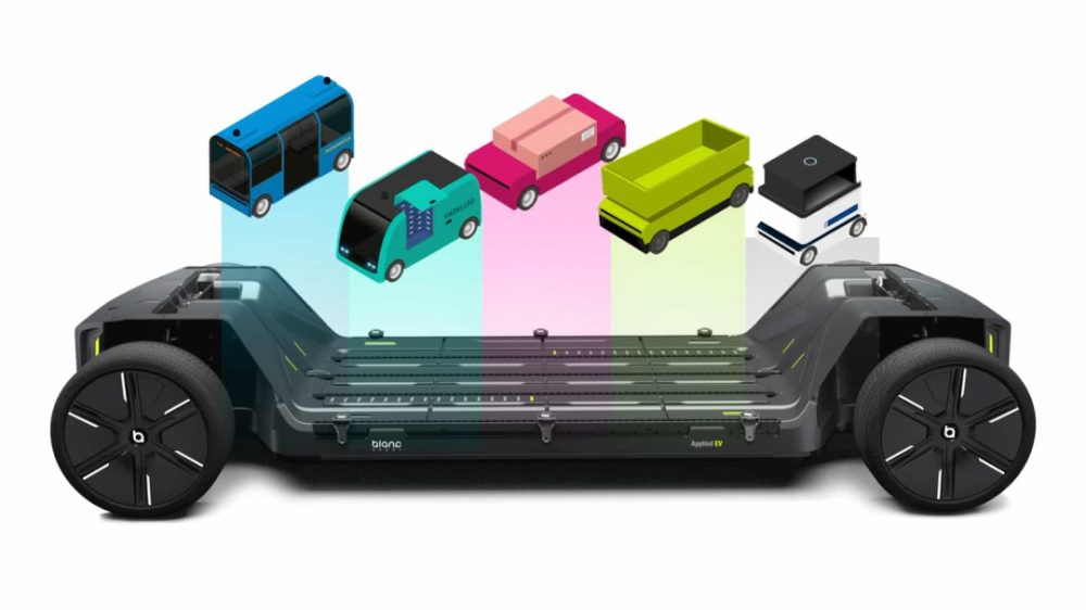 “Blanc Robot”内藏电池、电机、制动器等电子控制功能部件,配合用途搭载于车身即可实现自动行驶。