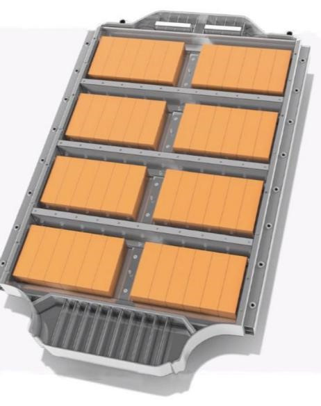 电池包箱体和电池上盖(Batterycases and cellcovers)可能需要冲裁、成型、弯曲、压花和拉伸操作,以达到越来越严格的尺寸公差要求。一些供应商(暂时)选择用铝型材(Constellium)或深冲压件(Novelis)制造外壳;其他的选择钣金加工件(Benteler)或冲压件和铸件的组合(Audi)。还有其他一些公司开发了整体式的铝铸件,而雪佛兰Bolt的电池包外壳是由热固性乙烯基杂化树脂和玻璃纤维增强材料制成的。