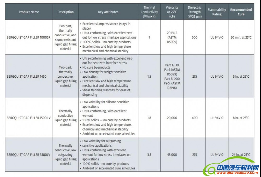 以Gap Filler 为例,下图是汉高的Gap Filler产品线