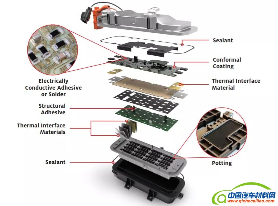在动力电池Pack领域的应用,包括上盖与下箱体之间的密封胶,BMC 里的三防漆,灌封胶,模组与箱体之间的导热胶和结构胶等。