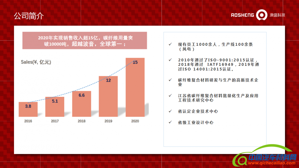 由中国汽车材料网主办的“2021年(第六届)新能源汽车轻量化技术研讨会暨展示会”将于4月8-9日在江苏苏州召开。会议有幸邀请了江苏澳盛复合材料科技有限公司带来“汽车低成本碳纤维复合材料解决方案”的主题报告分享。