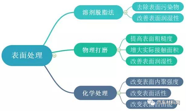 胶粘剂按应力-应变特性分为韧性及脆性两种,脆性胶粘剂的剪切强度高于韧性胶粘剂,韧性胶粘剂的连接静强度较高。因此,环境温度低于100℃时尽量选用韧性胶粘剂,高温环境时最好选用脆性胶粘剂。目前碳纤维复合材常用的胶粘剂有:环氧树脂类、聚胺酯类、丙烯酸类。复合材料胶接表面处理:粘接物体表面的清洁度、粗糙度和表面化学结构这三个因素直接影响最终的粘接强度,表面处理工艺主要是改善材料表面提高粘接强度。常用的表面处理方式有以下三种: