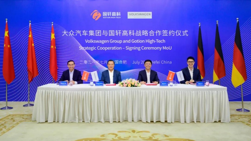 2021 年 7 月 12 日,国轩高科与大众汽车集团以云签约形式达成战略合作框架协议。双方决定共同推动大众汽车集团萨尔茨吉特工厂的电池工业化生产,国轩将提供相应技术支持;同时合肥国轩也与大众汽车(中国)达成协议,为其常规量产车型开发第一代标准电芯。这是双方继2020年5月股权协议签订之后的又一个大动作,意味着双方的合作更进一步。