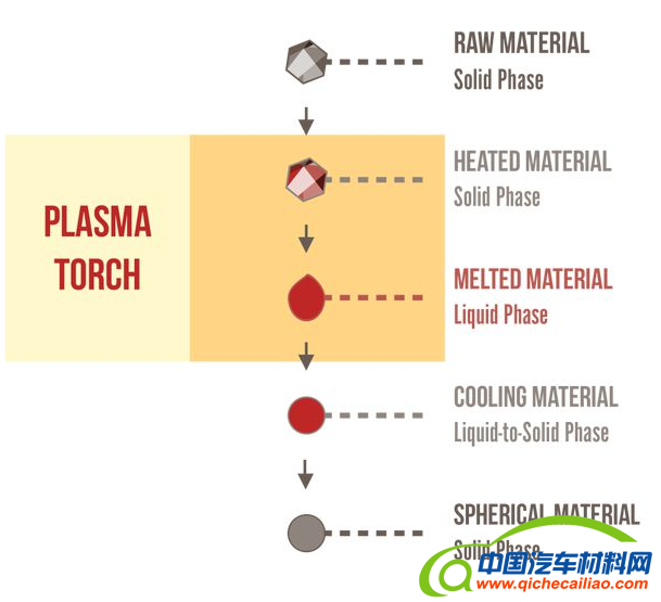 球化(SphEroIdiZation):将粉碎、雾化和海绵化的粉末转为高度致密的球形粉末颗粒,包括进料颗粒的加热和熔化,然后在受控条件下冷却。