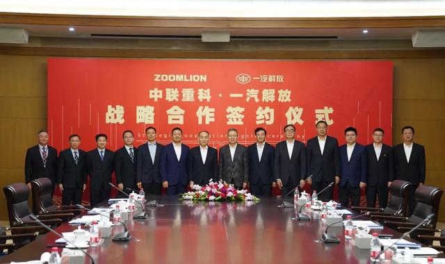 近日,一汽解放汽车有限公司(以下简称“一汽解放”)与中联重科股份有限公司(以下简称“中联重科”)在中联重科长沙麓谷基地签署战略合作协议,全面深化战略合作伙伴关系。中联重科董事长、CEO、党委书记詹纯新与中国一汽总经理助理、一汽解放董事长、党委书记胡汉杰出席签约仪式。