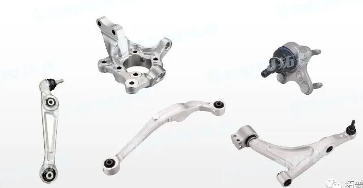 从产品能力上看,拓普集团在底盘领域具备零件级、模块级以及系统级的开发能力,在轻量化领域,具备球铰、锻造本体、液压衬套的完全自主设计开发生产能力。该公司的锻铝产品聚焦在高强度轻量化底盘零部件,特别是轻量化悬架系统,产品类型包括:转向节、三角臂、U型臂、线型臂、减震器支架、后横臂、电池包支架、热管理阀板等。