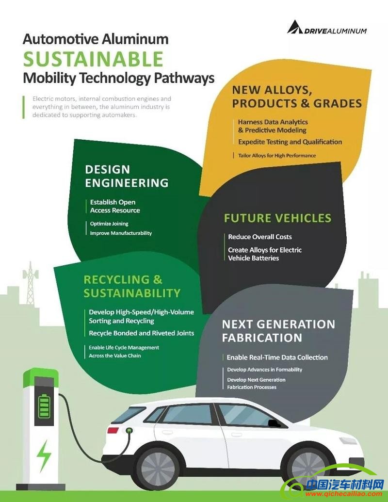 为应对快速发展的交通电气化的时代,美国铝协于2021年3月召集了行业利益相关者来确定和解决当前汽车用铝面临的挑战,在五个关键领域达成目标并确定实现这些目标的技术途径。因此,研究起草了这份技术路线图报告,铝业协会把这个报告描述为“在快速发展的市场中,汽车铝行业在展开竞争前的合作事项”,阐明了铝行业共同的努力方向。
