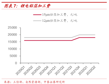 2021年,行业供给紧张,电池铝箔的加工费普涨 10%以上。2022年上半年,在铜箔加工费整体承压的情况下,锂电铝箔加工费持续坚挺,也在一定程度上反应锂电铝箔供需偏紧以及竞争格局占优。中泰证券预计未来在需求高增的情况下,受到技术工艺、良率水平、投建周期(2-3 年)等因素的制约,今明两年电池铝箔供不应求的局面有望延续,加工费也将继续维持高位,行业仍处于高景气阶段。