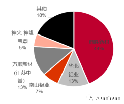 锂电池爆发前,电池铝箔作为较为“冷门”的品种,易被铝加工生产企业所忽视。在 2021 年之前,行业的主要参与者是鼎胜新材和华北铝业。鼎胜新材深耕行业十余年,技术工艺成熟叠加具备快速转产的能力,锂电铝箔的出货量从 2020 年的 2.5 万吨提升至 2021 年的 5.6 万吨,实现翻倍增长。同时,鼎胜新材在国内市占率也对应提升至44%,成为行业的领军企业。目前电池铝箔行业的平均良率水平为 60%,而头部企业的良率达 70%以上,头部企业的单吨净利远超同行。