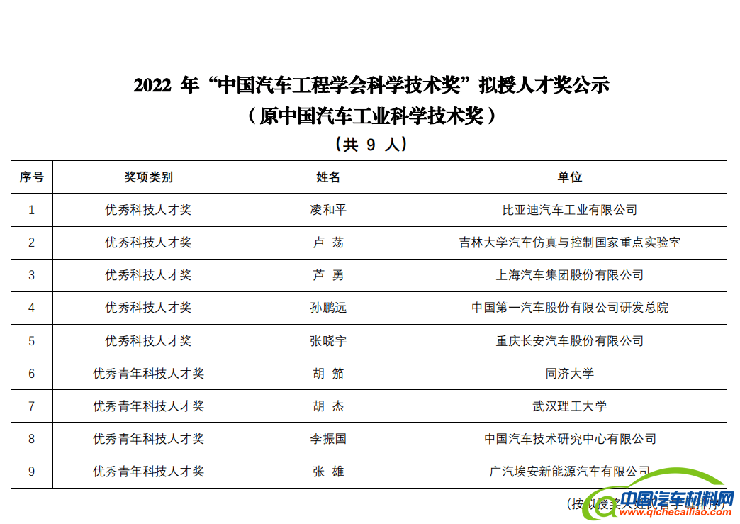 以上《2022年“中国汽车工程学会科学技术奖”拟授奖项目和人才公示》将在中国汽车工程学会主页(http://www.sae-china.org)、中国汽车工程学会官方微信号以及中国汽车报上同时发布。