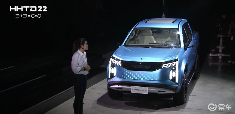 此次推出的Model V,定位于电动皮卡车型,采用五座布局,拥有1吨的载重能力及3吨的拖曳能力。
