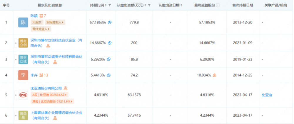近日,深圳市博恩实业有限公司发生工商变更,新增比亚迪、上海晋益晟企业管理咨询合伙企业(有限合伙)等为股东,注册资本由1200万增加到1363.6万,涨幅达到13.6%。