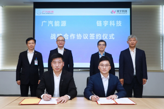 链宇科技董事长、总经理秦宇迪,广汽能源董事、总经理刘志辉分别代表链宇科技和广汽能源签署战略合作协议。双方协同发力行业前沿先进车网互动技术,通过V2G深化落地引领能源产业高质量发展。