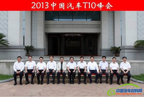 2013中国汽车T10峰会于6月28日至7月1日在江苏召开,会议由中国汽车工业协会常务副会长兼秘书长董扬、江淮汽车董事长安进和奇瑞汽车董事长尹同跃共同主持,全国政协副主席、科技部部长万钢,工信部部长苗圩出席会议并作了重要讲话。
