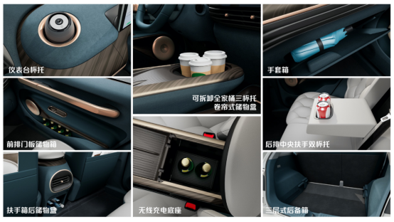 内饰空间以“云上舒适之家”为设计理念,拥有超高“得房率”乘员舱、后排大三座“沙发床”,并提供十合一“茶几式”扶手箱、“三层储物间”后备箱,全车更有18处魔方收纳空间,全面满足用户“大城市精致通勤,小家庭舒适出行”的需求。