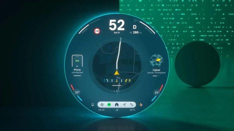 最有意思的当属新一代的多媒体屏幕,它并不是像上一代那样内嵌在一块圆形的结构中,而是实实在在的用了一整个圆形屏幕,包括车速等信息都可以在这块屏幕里显示。
