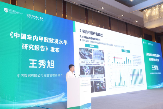 中汽数据有限公司综合管理部部长王秀旭发布《中国车内甲醛散发水平研究报告》