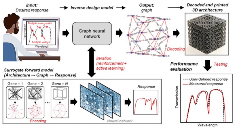 研究人员利用机器学习来反向设计材料和工程产品中复杂的机械行为,并可通过桌面3D打印机将其打印出来。这种基于人工智能的新设计方法有望提高材料性能,大大简化制造过程,并开发具有新机械性能的材料。材料科学与工程学副教授、首席研究员Xiaoyu “Rayne” Zheng表示:“这种基于机器学习的设计方法能够快速创建具有用户定义性能和目标属性的材料,使所有用户都有可能定义其目标产品的机械行为。其余的工作可以留给人工智能和3D打印机,以提供完全符合期望的产品。”