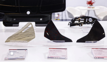 此次HRC还首次在进博展出了热塑性轮毂插片,汽车饰条等全新产品。热塑性复合材料可循环、可回收再利用,为整车制造从源头减碳提供了新的材料和技术选择。热塑性碳纤维产品采用模压或注塑模压工艺一次成型、辅助电磁加热技术提高成型速度及效率,单个产品成型周期可缩短到5分钟内,产品一致性好,涂装良率高。另外,为了满足用户个性化、定制化需求,HRC还带来了PC基藤木纹理,彩色大理石纹理等多种表观的热塑产品,展示了多种应用方向。