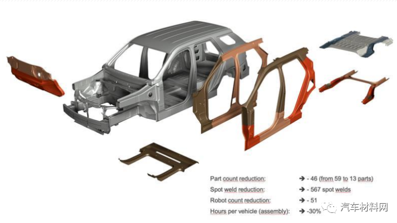 安赛乐米塔尔全球研发团队确定了六个应用可集成到一个白车身(BIW)系统中,并验证了碰撞性能。一项与合作伙伴的专家一起对汽车制造工艺和操作的深入技术分析证实了这六个白车身多部件(MPI) 集成概念可减少46个零件,减少567个焊点,可为装配车间减少51个机器人,每辆车减少30%的制造工时。采用绿地法评估装配车间的资本性支出减少已获得证这些概念已经在与几家整车厂进行合作研究,安赛乐米塔尔全球研发团队继续开发新的多部件集成(MPI)解决方案以简化生产制造工艺,并使白车身获得最佳技术性能。