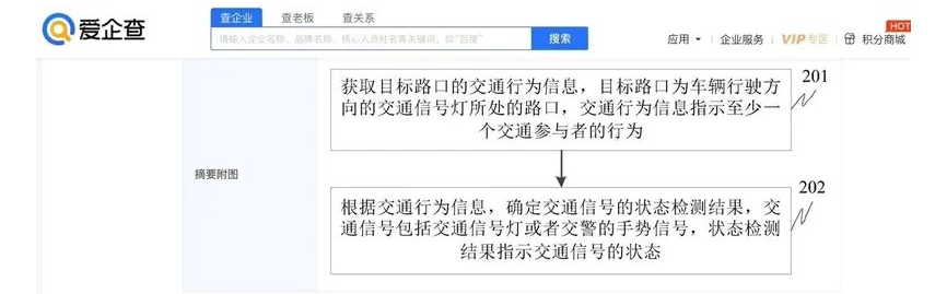 专利摘要显示,本申请涉及自动驾驶技术领域,通过获取目标路口的交通行为信息,反向预测出关联交通信号的状态,包括交通信号灯或者交警的手势信号。这一技术可以避免相关技术中仅依靠交通信号图像感知来实现交通信号状态检测的情况,提高了交通信号状态检测的准确率。