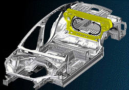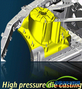 另外,在shock tower (减震器支座)采用压铸铝合金,将15个零件集成为一个整体,提高了车身的刚度,并减重40%。这个技术一般在路虎、BMW X5等豪华车上才能见到。