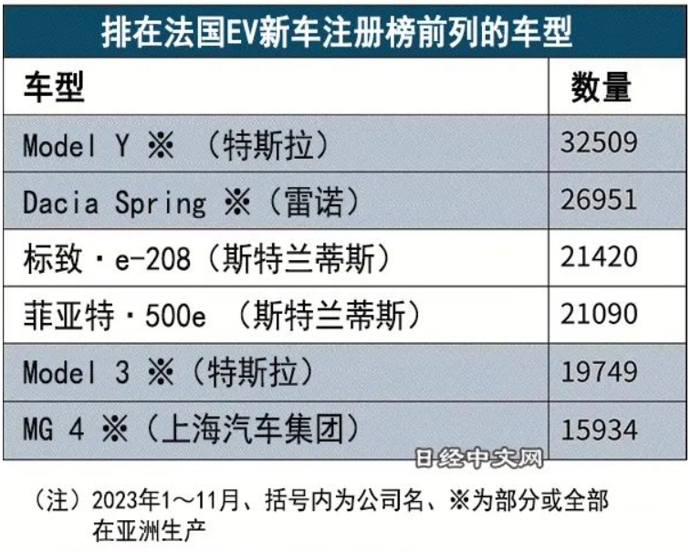 其背景是中国EV的崛起。德国施密特汽车研究公司的调查显示,2023年1~9月在欧洲销售的中国产EV超过40万辆,占EV新车销售的近3成。不仅是名爵、比亚迪等中国厂商生产的汽车,考虑到成本竞争力特斯拉、宝马等欧洲企业在中国生产的EV也达到15万辆。
