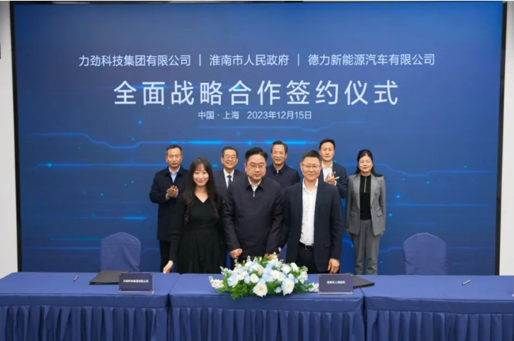 2023年12月15日,德力新能源与力劲集团宣布正式达成全面战略合作。双方将在生产自动化、商用车一体式压铸等方面展开深入合作。德力新能源董事长兼CEO钱得柱、深圳力劲科技董事刘莹莹代表双方签约。