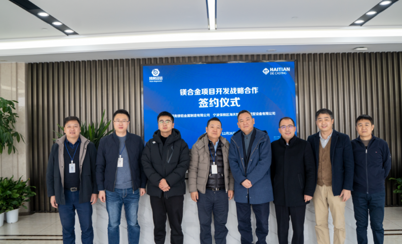 近日,海天金属与重庆博奥镁合金项目开发战略合作签约仪式在海天金属位于宁波的制造基地顺利举行。此次合作聚焦于HMG1300等镁合金注射成型成套设备的批量采购,开启了双方在镁合金领域更深入的战略合作。