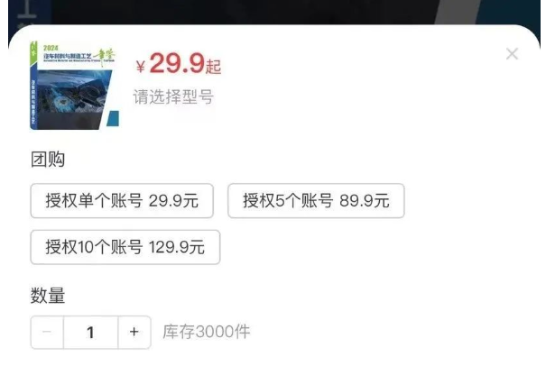单人购买29.9元 ,可申请1个微信号授权;5人团购89.9元,可申请5个微信号授权;10人团购129.9元,可申请10个微信号授权。