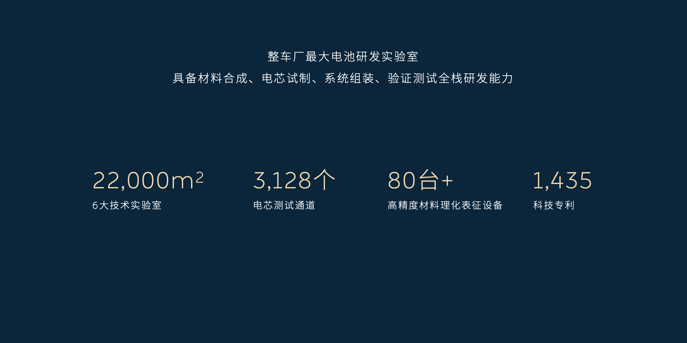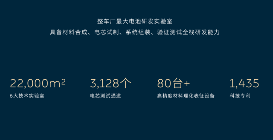 蔚来在电池研发方面,已具备材料合成、电芯试制、系统组装、验证测试全栈研发能力,拥有整车厂中规模最大的电池研发实验室 。实验室超过两万平,拥有先进材料、理化测试等6大技术实验室,3,128个电芯测试通道和超过80台高精度材料理化表征设备。蔚来在材料、电芯、系统、软件、云端策略已拥有1,435项科技专利,其中电池寿命相关专利达104项。