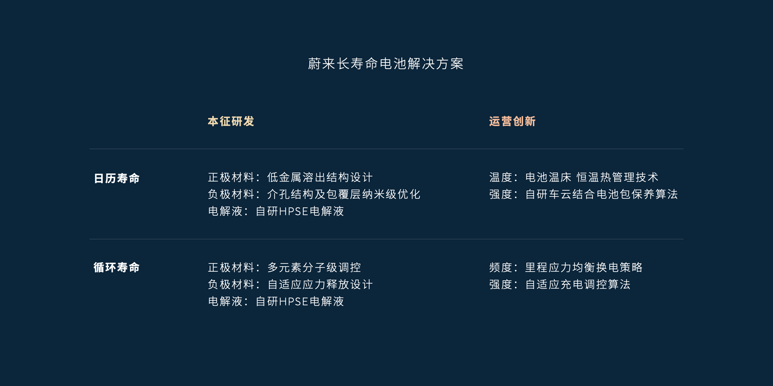电解液衰竭,同样是电池寿命降低的原因之一。蔚来引入新型双盐体系,自研HPSE(高熵低阻快离子)电解液应用自主合成添加剂材料,调整溶剂比例,最终实现电芯内部化学体系的安全、快充和循环寿命之间的平衡。