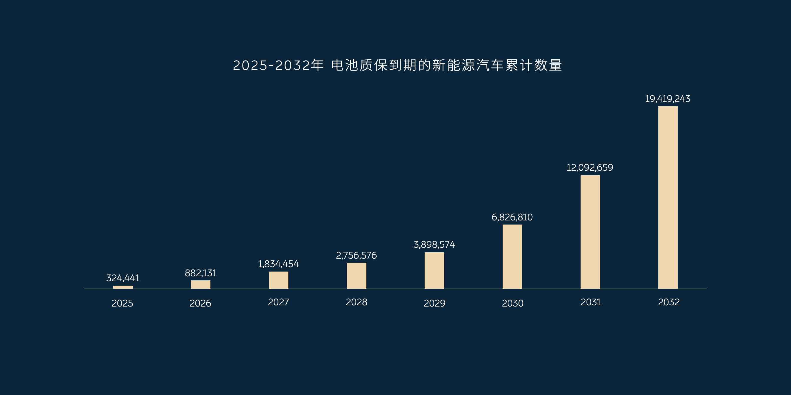 新能源汽车电池,行业平均质保年限是 8 年。2025到2032年,预计累计将有近2000万辆新能源车面临电池质保到期,动力电池将面临脱保的行业问题。电池寿命无论对于行业、企业还是用户,都有重大意义。解决电池寿命问题已经刻不容缓。