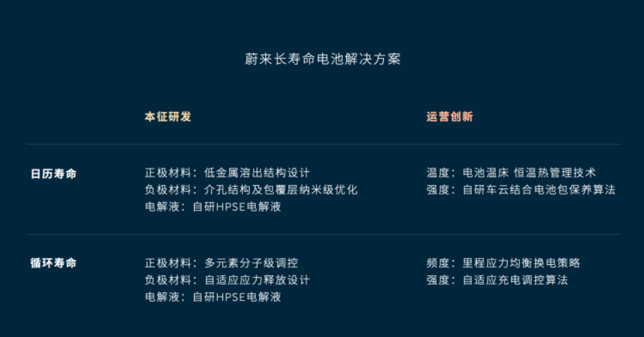 3月14日,蔚来长寿命电池战略沟通会在北京举行,针对动力电池的日历和循环寿命与车不同寿命的问题,基于本征研发和运营创新,推出15年长寿命动力电池解决方案。