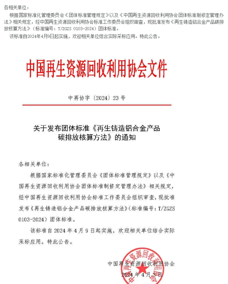 欢迎广大再生铝及下游企业根据实际情况采标应用,做好本企业碳排放核算工作,为推动我国再生铝产业绿色低碳循环发展贡献标准力量。