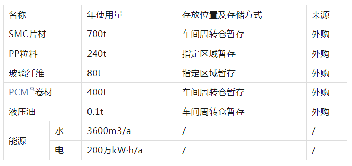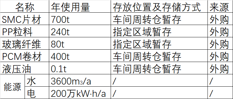主要原辅材料及能源消耗一览表